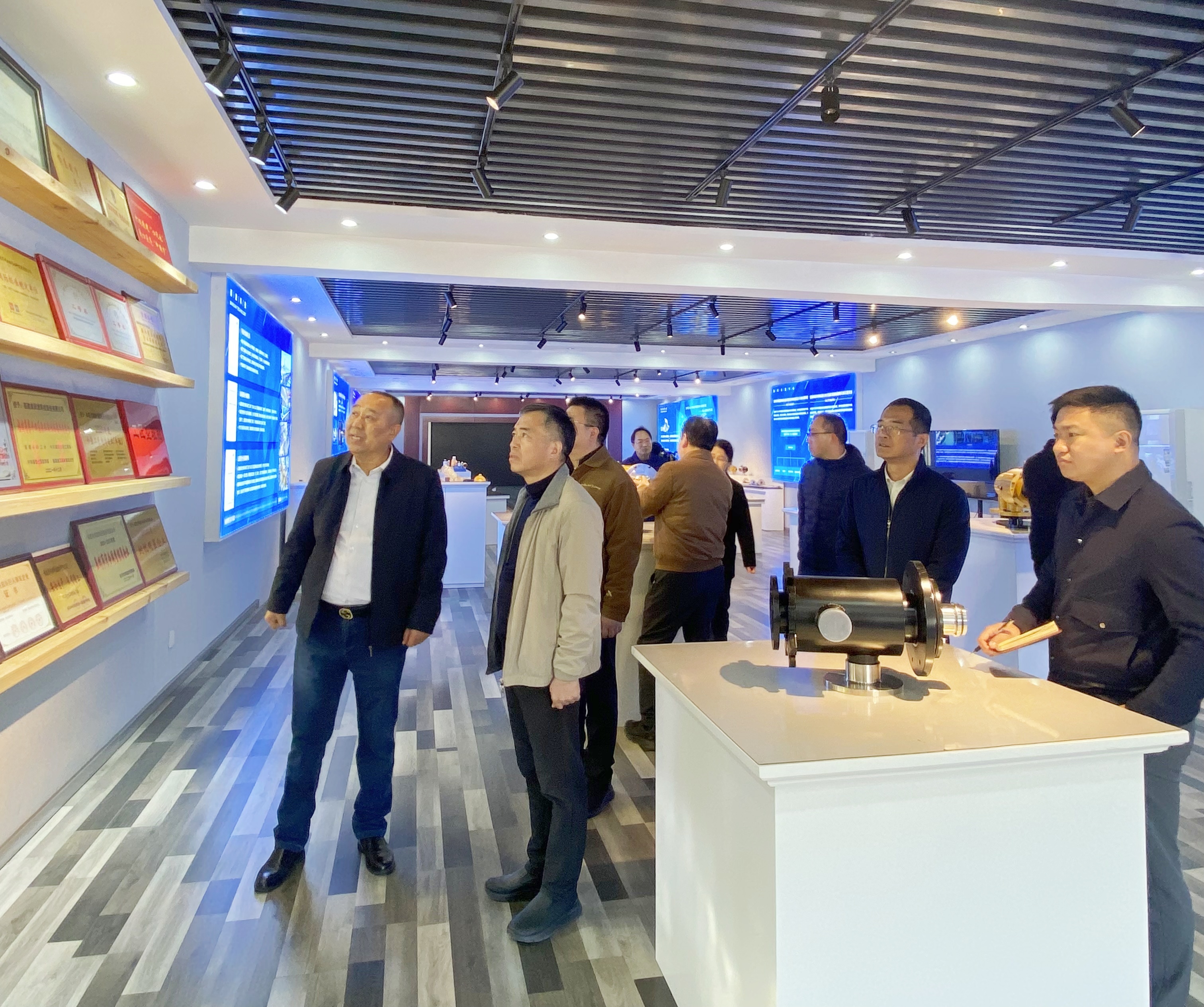 三、深耕標(biāo)準(zhǔn)建設(shè) 擦亮高新專精名片 調(diào)研中,朱斌董事長(zhǎng)向張桂森書記一行匯報(bào)了閩旋在行業(yè)標(biāo)準(zhǔn)化建設(shè)中的引領(lǐng)作用,公司承擔(dān)著全國(guó)鑄造機(jī)械標(biāo)委會(huì)基礎(chǔ)通用分技術(shù)委員會(huì)和全國(guó)機(jī)械安全標(biāo)委會(huì)機(jī)械安全設(shè)計(jì)分技術(shù)委員會(huì)兩大專業(yè)秘書處,深度開展多項(xiàng)國(guó)家標(biāo)準(zhǔn)和行業(yè)標(biāo)準(zhǔn)制定,推動(dòng)裝備制造行業(yè)規(guī)范化發(fā)展。張桂森書記特別關(guān)注標(biāo)委會(huì)秘書處落地情況。 在企業(yè)榮譽(yù)墻前,董事長(zhǎng)朱斌介紹了閩旋作為“國(guó)家高新技術(shù)企業(yè)”“專精特新企業(yè)”等的成長(zhǎng)歷程。