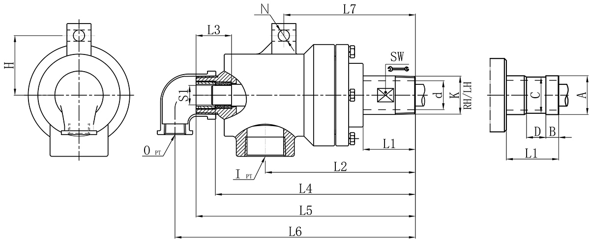 | Model | K | I | O | S1 | d | L1 | L2 | L3 | L4 | L5 | L6 | L7 | L9 | N | H | SW | 法蘭式外管尺寸對(duì)照表 | |||