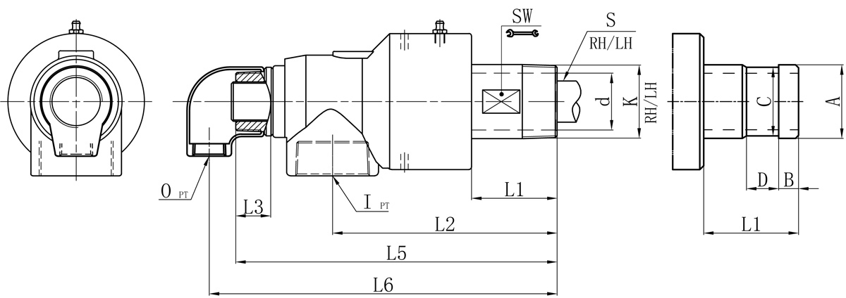 Model K I O S S1 d L1 L2 L3 L5 L6 SW 法蘭式外管尺寸對照表