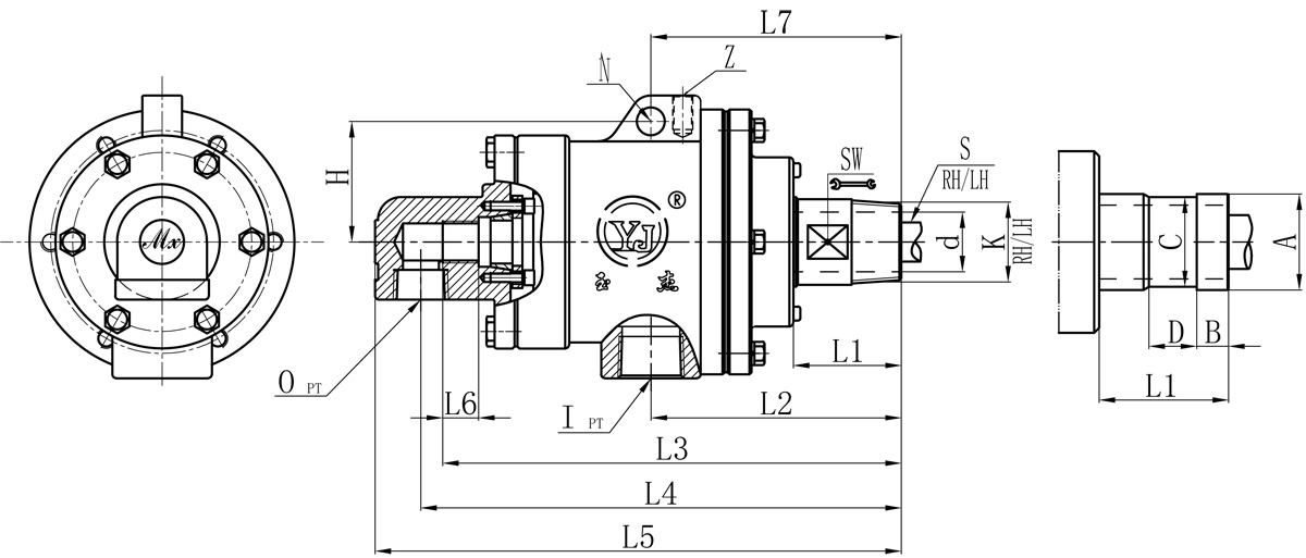 | Model | K | I | O | S | d | L1 | L2 | L3 | L4 | L5 | L6 | L7 | Z | N | SW | H | 法蘭式外管尺寸對照表 | |||