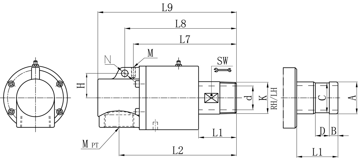 | Model | K | M | d | L1 | L2 | L7 | L8 | L9 | M | N | H | SW | 法蘭式外管尺寸對照表 | |||